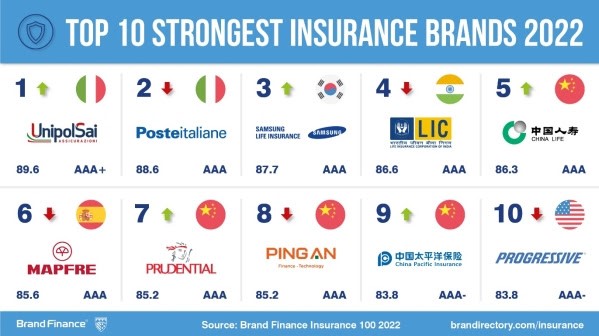 While the Western world looks beyond COVID, Chinese insurance brands continue to face extremely challenging conditions. Ping An (brand value down 4% to $42.9 billion) remains the world’s most valuable insurance brand, being stuck behind the COVID curtain of widespread continuing lockdowns.